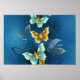 Composition of flying, jewellery, gold and dark butterflies on textured jewellery background. Golden butterfly.