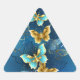 Composition of flying, jewellery, gold and dark butterflies on textured jewellery background. Golden butterfly.