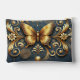 An artistic depiction of an ornate golden butterfly surrounded by elegant floral and ornamental curls on a contrasting blue background, enhancing themes of luxury, elegance, and decor.