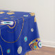 I am very pleased with this purchase. The quality is good, it is heavy and the image decorating it is brilliant and very eye-catching. When I first laid eyes on this tablecloth, still folded and in the transparent covering, it brought a smile to my face and I knew right away it was a good choice. A few days later my wife replaced our old tablecloth with this little gem and was quite satisfied. She noted that it is thick and fits the table very well with just enough hang over (although our dining table is extended by a traditional leaf which we keep in place even if we are not having guests over) and stays put instead of blowing all over the place. The image decorating this tablecloth is brilliant and very eye-catching. It looks even better than it appeared online.