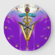 GOLDEN CADUCEUS VETERINARY SYMBOL / Blue Purple Large Clock