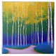 Golden Canopy – A Woodland Landscape. A stunning blend of gold, blue, and silver hues creates a dreamlike interpretation of a fork in the road. The vibrant colours and serene birch trees bring a sense of peace and contemplation and enhance the mystery of where we are all headed.