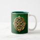 Golden Celtic Knot on Green Two-Tone Coffee Mug