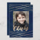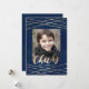 Send a stylish, modern holiday photo card this holiday season! Our Golden Cheer holiday photo card features a navy watercolor design with faux gold foil lines and text that says "Cheers". The trendy Christmas photo card also features placeholders for your custom photo and text.