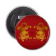 Double Chinese goldenn Dragon paper-cut with red old Chinese ideogram for Dragon in the centre + "Year of the Dragon". Design on round bottle opener. Perfect for Chinese New Year of the Dragon and Birthday (people born in Dragon Year).