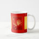 Rooster Year 2017 mug (model n°2) = Design of Rooster on red "silk" background with golden frame and golden tapestry as background. Golden lettering with shadow (not customisable) in English and metal red symbol of Rooster. Perfect for Chinese New Year 2017. --------- "The Rooster (simplified Chinese: 鸡; traditional Chinese: 雞/鷄) is one of the 12-year cycle of animals which appear in the Chinese zodiac related to the Chinese calendar. The Year of the Rooster is represented by the Earthly Branch character 酉. The name is also translated into English as Chicken. Rooster is the only bird included in the Chinese zodiac. wikipedia-------Matching Chinese New Year greeting card, postcard, postage and sticker. Don't forget the whole collection.