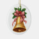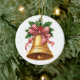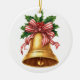 Golden Christmas Bell Holly and Stripe Bow Ceramic Ornament