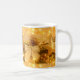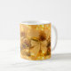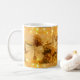 Elegant Christmas mug with beautiful golden star ornament, bow, shiny pearls, pine cones and sparkling Christmas lights tiled image. Perfect holiday gift for friends and family.