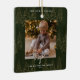 Send loved ones warm season greetings with these gold Christmas fir trees against a cosy green backdrop. Easily insert your personal details along with your favourite picture photos, and make it your very own.