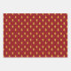 Golden Christmas Trees on Red Background Wrapping Paper Sheet