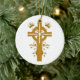 A beautiful golden floral cross round ceramic ornament. Featuring a lovely golden cross with floral accents on a white background, on both sides. A wonderful gift item for family and friends, members of your church, priest, anyone in your spiritual or religious community. It is also a lovely favour for a First Holy communion, or sacramental party celebration. This design is also available in our shop on matching invitations, stamps, table number cards, seating cards, gift items and more! Please visit our shop for other religious, spiritual, and party celebration items.