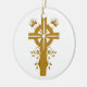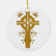 Golden Cross Floral Double Sided Round Ornament