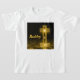 Personalise with any name easily. Custom stylish brown with golden christian religious cross design with shining special effects star burst all reflected in water ripples. Great t-shirt for First Holy Communion and Confirmation gifts. Many styles and colours of t-shirts available. See matching stickers, magnets, button, and pins available at MVDesigns store, as well as in other colours.