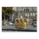 Swedish golden crown on handrail of the bridge between two islands Blasieholmen and Skeppsholmen. Stockholm, Sweden