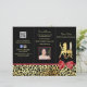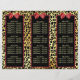 A glamourous hair salon trifold price list flyer with a woman wearing a gold crown. The background is decorated with a trendy black and gold leopard print and a girly red bow. Flat printed Image, NOT metallic.