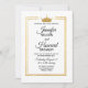 Stylish wedding invitation done in white or any colour background you chose, with graphics of a golden frame around the text area and a gold crown, at the top. The back has a gold crown pattern. Personalise the text to suit your needs. Matching products are available.