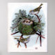 This is an exquisite crisp clean vintage graphic of two Golden Crowned Kinglet birds making a nest in a pine tree.