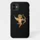 Golden silhouette of cupid drawing back his bow, about to shoot his arrow of love.