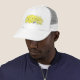 Golden daffodils are visited by a blue butterfly on this hat design from the Ballerina Bunny Jonquil collection.