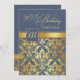 Rich golden damask pattern set against a blue grey background Monogrammed 90th Birthday Party Invitation.