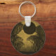 Grungy and cool Dark Forest Eclipse Keychain in gold featuring a quiet forest scene with a lunar eclipse. This digital art key fob will look great and keep your keys handy. Customise with your own text.