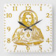 Golden Depiction of Jesus Holding a Book Square Wall Clock