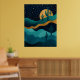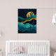 Immerse yourself in a dreamy desert under a star-studded sky with this stunning abstract illustration. Featuring layered waves of teal and gold, silhouetted cacti, and a glowing moon, this cosmic desert scene blends elegance with tranquillity.