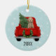 Golden Doodle Dog Red Christmas Truck Ceramic Ornament
