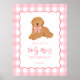 Welcome your guests in the sweetest way with this pink gingham golden doodle first birthday poster! Featuring a darling golden doodle puppy with a pink gingham bow and a classic checkered background, this personalized birthday poster adds a heartwarming touch to your little one’s special day.