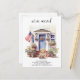 Announce your move to family and friends with our patriotic moving announcement featuring a beautiful watercolor painting of a Golden Doodle dog, modern house with a blue door and the American flag proudly displayed on the front porch. This announcement is perfect for dog lovers and anyone looking to announce their new address. With its red, white, and blue colour scheme, this announcement is a great way to show your love for the USA while sharing your exciting news. Let everyone know that "We've moved!" and invite them to come visit and meet your best friend in your new home. COPYRIGHT © 2023 Judy Burrows, Black Dog Art - All Rights Reserved. Golden Doodle Puppy Patriotic Custom Dog Moving Announcement Postcard