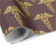 Double snake caduceus. Gold colour icon. Custom background colour. Seamless pattern.