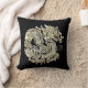 Golden Dragon Elegant Faux Gold Foil Logo on Black Background Cotton Throw Pillow Custom Monogram D