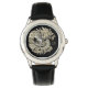 Golden Dragon Logo Add Name Text or Monogram Black and Faux Gold Foil Kid's Stainless Steel Black Leather Strap Watch
