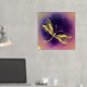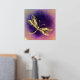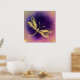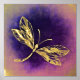 Elegant foil print featuring a golden foil dragonfly, against a blurred pink and purple background. Beautiful print for any nature or dragonfly lover.