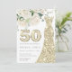 Golden Dress White Floral Roses 50th Birthday Invitation