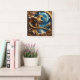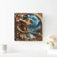 Golden Eagle Perched by Moonlit Lake at Night Square Wall Clock