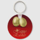 Glamourous illustration with 2 golden easter eggs on a red background.