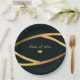 Add a touch of sophistication to your graduation celebration with these Personalized Golden Elegance paper plates. Featuring a sleek black background and graceful gold ribbon accents, this design coordinates perfectly with matching announcements, banners, yard signs, and candy stickers from the Golden Elegance collection.