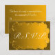 Introducing our Golden Elegance Wedding RSVP, an exquisite piece that embodies the allure of a bygone era. Immerse your guests in the charm of old-world elegance with this meticulously crafted response card, where every detail whispers of a timeless celebration. The rich golden hue of the card sets the stage for a regal affair, while ornamental flourishes delicately grace the edges, evoking a sense of refined opulence. The intricate design, reminiscent of a bygone epoch, adds a touch of sophistication that perfectly complements your classic-themed wedding. Make your guests feel like honoured participants in a love story for the ages. With the Golden RSVP, you're not just requesting their presence; you're extending an invitation to immerse themselves in the enchantment of your celebration. Let this response card be a prelude to the grandeur that awaits, and a symbol of the enduring love that will be celebrated on your special day.