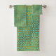 Golden Embossed Celtic Pattern on blue wood Bath Towel Set