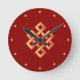 Golden endless knot on maroon Wall Clock. The endless or eternal knot symbolizes wisdom and compassion. It means we all are interconnected! Golden is for wisdom and red is for love. The golden dots are gold metallic look.