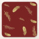 Golden Feathers Dark Red Square Paper Coaster