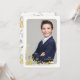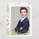 Gold, grey and white field flowers and foliage burst onto the lower border of this photo invitation. The complimentary back features ample space for your celebration details. The cross and wording can be dragged to any location, made larger or smaller ( + - ), or eliminated. (Cute photo created by valuavitaly - www.freepik.com). (Vector design by Vecteezy.com). The card is easy to customise with your wording, font, font colour and choice of paper types. Not exactly what you're looking for? All our products can be custom designed to meet your needs at no extra charge. Simply contact us at heartfelthelper@gmail.com. Coordinating products available at your request.