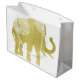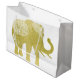 Wrap in style with the crisp white and gold leaf filigree elephant. Fashionable and modern. Customise with text or add a background colour to personalise your gift.