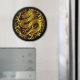 This artwork showcases a captivating engraving of a dragon breathing flames, adorned with intricate gold decorations. The powerful imagery of the dragon symbolises strength, ferocity, and mythical prowess. The golden embellishments add an element of opulence and elevate the dragon's presence. Immerse yourself in the mesmerising world of this artwork and let the dragon's fiery breath ignite your imagination.