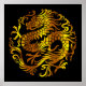 Golden Fire: A Dragon's Engraving Poster
