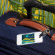 I was happy with the acrylic tag but it came with a thin leather strap to attach the tag to luggage (like a cat collar). I replaced the strap with a metal ring off of a key ring as the leather strap would come undone or break easily as luggage is sometimes handled without much care by airlines. Printing is great. Colours and positioning of the design I put on the tag were perfect. Very pleased.