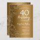 Golden Floral 40th Birthday Party Invitation. Minimalist modern design featuring botanical outline drawings accents and typography script font. Simple trendy invite card perfect for a stylish female bday celebration. Can be customised to any age. Printed Zazzle invitations or instant download digital printable template.