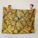 Golden Floral Pattern Oriental Flower Fleece Blanket