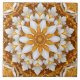 Golden Floral Snowflake Kaleidoscope Ceramic Tile